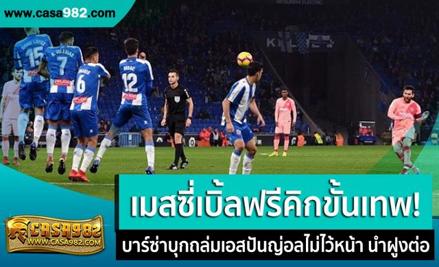 เกมดาร์บี้แมตช์แห่งแคว้น กาตาลัน "นกแก้ว" เอสปันญ่อล สถิติยังเป็นรองเจ้าบุญทุ่มต่อไป หลังเจอทีเด็ดของ ลิโเนล เมสซี่ ตะบันปั่นฟรีคิกงามหยดให้ทีมบุกฉลองชัย 4-0 แถมเก็บอีกสามแต้มนำจ่าฝูงตาราง ลา ลีกา ต่อไป