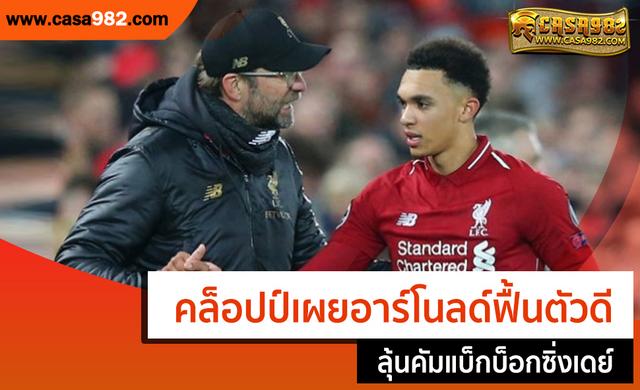 เจอร์เก้น คล็อปป์ ผู้จัดการทีม ลิเวอร์พูล ยอดสโมสรแห่งเวที พรีเมียร์ลีก อังกฤษ เปิดเผยว่า เทรนท์ อเล็กซานเดอร์-อาร์โนลด์ แบ็กขวาดาวรุ่งของทีม ฟื้นตัวจากอาการบาดเจ็บบริเวณฝ่าเท้าได้ดีมากๆ จนทำให้เขาอาจจะกลับมาช่วยทีมในช่วงที่มีโปรแกรมลงเล่นติดต่อกันได้