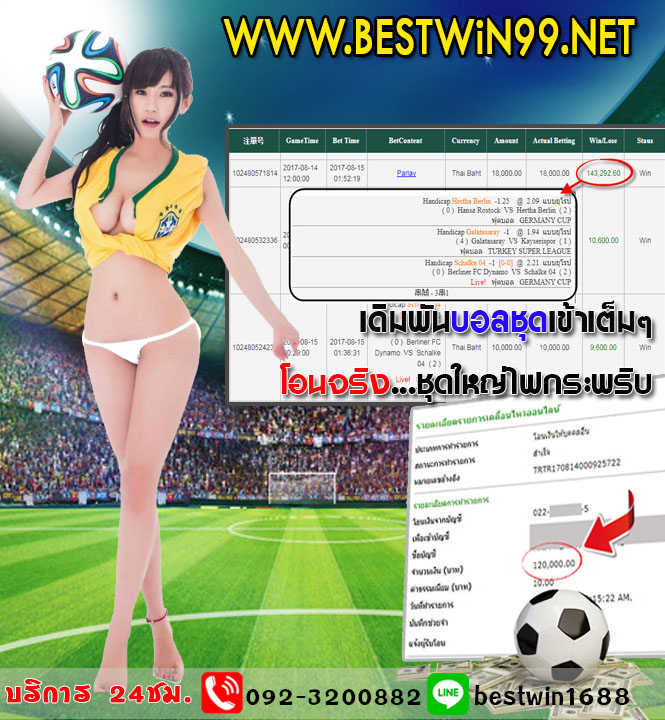 RE : การันตีนเว็บแทงบอลออนไลน์บอลชุดเข้าเต็ม โอนจริง ได้จริง www.bestwin99.net