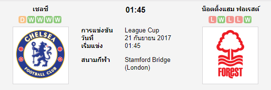 แคปิตอล วัน คัพ อังกฤษ รอบ 3 เชลซี เตรียมเปิดสนาม Stamford Bridge ต้อนรับการมาเยือนของทีม น็อตติ้งแฮม ฟอเรสต์ โดยเจ้าบ้าน เชลซี มีการเปลี่ยนแปลงยกชุดแน่นอนสำหรับโค้ชอย่าง คอนเต้ เพราะนักเตะตัวหลังนั้นกุมศึกหนักมาอย่างต่อเนื่องแต่อย่างไรก็ตามด้วยขุมกำลังสำรองของเจ้าบ้านนั้นยังมีดีพร้อมที่จะโชว์ฟอร์มให้นายเห็นเพื่อติดทีมชุดใหญ่ทางฝั่ง น็อตติ้งแฮม ฟอเรสต์ ผลงานในพักหลังนั้นมักจะแพ้มาเสมออยู่แล้ววันนี้รู้ตัวว่าเป็นรองเยอะและไม่ผลีผลามที่จะบุกอยู่แล้วแต่ในท้ายที่สุดแล้วยังไงก็น่าจะโดนเจ้าถิ่นชนะไปได้ในเกมนี้