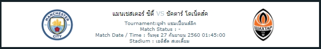 แมนฯ ซิตี้ VS ชักตาร์ โดเน็ตส์