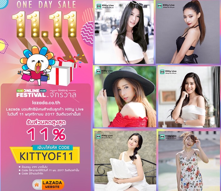 ตามรายงาน ครั้งนี้เป็นครั้งที่ 3 การร่วมมือกันระหว่าง Kitty Live และ Lazada และปีนี้เป็นปีที่ 2 ที่มีการร่วมมือกันด้านการตลาดออนไลน์ ใน “เทศกาล 11-11ช้อปทะลุจักรวาล 2017” Kitty Live ยังมีปรับแต่งเนื้อหาและการบริหารด้านการตลาดให้กับ Lazada สร้างการตลาดถ่ายทอดสดแบบรูปแบบใหม่ เช่น โฆษณาถ่ายทอดสด เนื้อหาความบันเทิงต่างๆ หรือ “VJ ชื่อดัง” ที่จะพาคุณ ไปซื้อรู้จักกับผลิตภัณฑ์ของ Lazada และรับรหัสส่วนลดพิเศษ เพื่อใช้ซื้อสินค้าจาก Lazada นอกจากนี้เพื่อเป็นการทำให้เข้ากับเทศกาลครั้งนี้ Kitty Live ได้ลดราคาของขวัญสูงสุดถึง 98% เพื่อให้User ได้ช้อปกันและสนุกไปกับ Kitty Live อีกด้วย