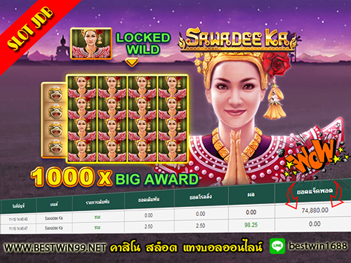 เว็บBESTWINขอแสดงความยินดีกับสมาชิกเว็บ ยูส Chai***5 เดิมพัน 2.50฿ ได้แจ็คพอต 74,880 ฿ จากเกมส์ #Sawadee Ka แจกหนักจริงๆ