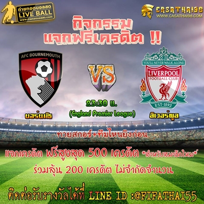 ร่วมสนุกกับกิจกรรมทายผลบอลได้ที่แฟนเพจ ถ่ายทอดบอลสด.com