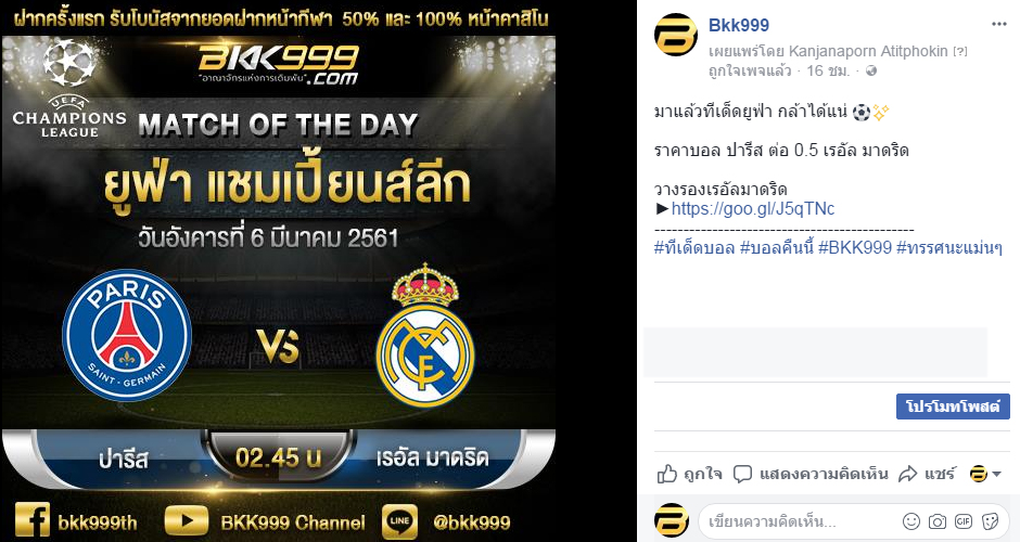 ราคาบอล ปารีส ต่อ 0.5/1 เรอัล มาดริด
