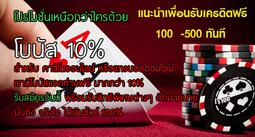 และหากแนะนำเพื่อนมาเล่นด้วย รับเครดิตทันที่ 100-300 บาทโดนไม่มีเงื่อนไขใดๆ