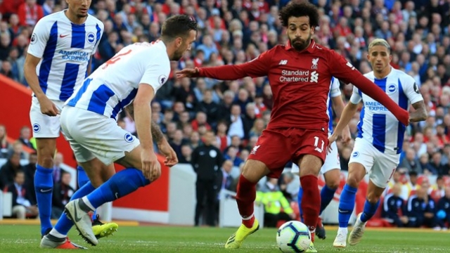 จนแล้วจนรอดเหล่า "เดอะ ค็อป" ได้เฮลั่นในแอนฟิลด์ นาที 23 แนวรับไบรท์ตันเล่นกันพลาด โดน มิลเนอร์ เบียดแย่งบอลมาถึง มาเน่ ไหลให้ ฟีร์มีโน่ แทงถึง ซาลาห์ หลุดเข้าไปซัดด้วยซ้ายบอลพุ่งเลียดเสียบโคนเสาสองอย่างเด็ดขาด ให้ ลิเวอร์พูล ขึ้นนำ 1-0