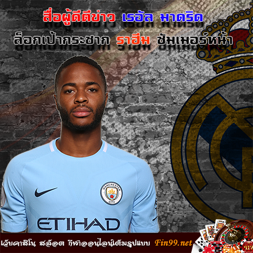 "#ราชันชุดขาว" เรอัล มาดริด ยักษ์ใหญ่แห่งศึกลา ลีกา สเปน ล็อกเป้ากระชากตัว ราฮีม สเตอร์ลิง ปีกฟอร์มฮอต "เรือใบสีฟ้า" แมนเชสเตอร์ ซิตี้ มาร่วมทีมในช่วงตลาดซื้อขายนักเตะซัมเมอร์หน้า จากการเปิดเผยของ สกาย สปอร์ตส์ นิวส์ สื่อชั้นนำในประเทศอังกฤษ