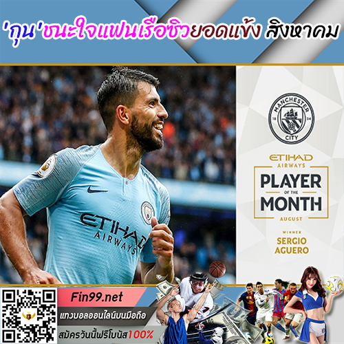 เซร์คิโอ อเกวโร่ กุน กองหน้าฝีเท้าคมของ แมนฯ ซิตี้ ได้รับการโหวตสูงสุดจากแฟนบอลให้เป็นผู้เล่นยอดเยี่ยมประจำเดือน สิงหาคม